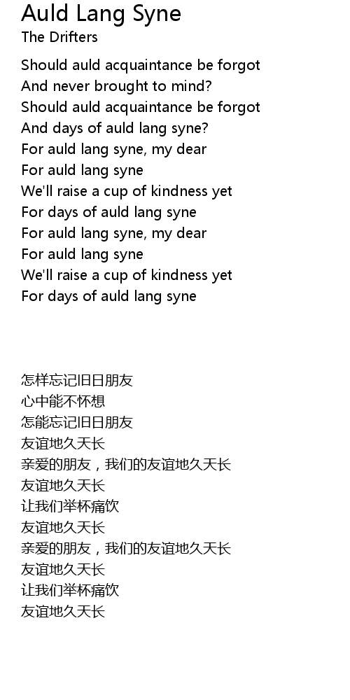 Auld Lang Syne Lyrics / The meaning and history of this new year's eve song, traditionally played and sung as midnight strikes, are also fascinating.. Auld lang syne is based on a scots (language spoken in lowland scotland) poem written by robert burns all the way back in 1788. The auld lang syne lyrics referring to 'we'll take a cup of kindness yet' relate to a drink shared by men and women to symbolise friendship. Does anybody really know the words? Should auld acquaintance be forgot, and auld lang syne! Burns first wrote down auld lang syne in 1788, but the poem did not appear in print until shortly after his death in 1796.