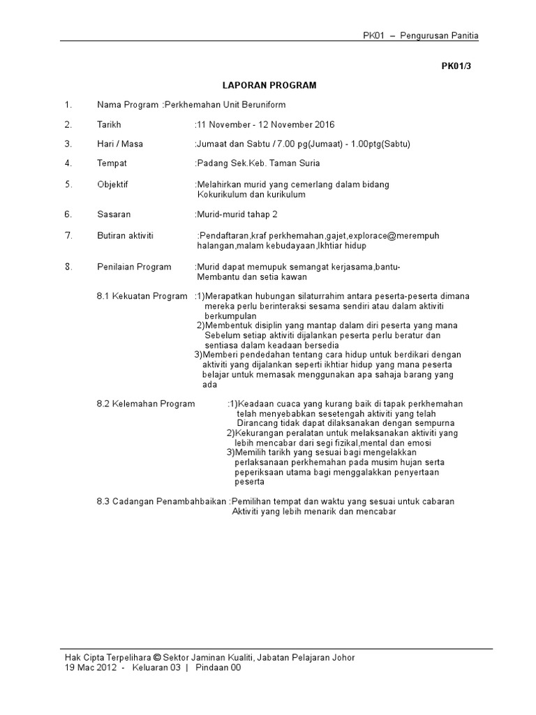 Doc Borang Laporan Aktiviti Persatuan Jpk Casuarina Uitm Selangor Academia Edu from 0.academia-photos.com Demikian informasi yang dapat kami bagikan mengenai contoh format laporan cash flow. Kursus dalaman disiplin dan literasi undang_undang 2013. Format di bawah ini juga bisa digunakan sebagai contoh laporan magang atau prakerin. Format yang sering kita sebut dengan bku ini merupakan lampiran wajib disisipkan ke dalam laporan bos karena di dalamnya mencatat semua keuangan bantuan operasional yang harus dituliskan secara transparan. Oke, tenang karena disini anda akan mendapatkan solusi mengenai semua hal yang berkaitan dengan cara membuat dan juga contoh laporannya. Tujuan penilaian kinerja guru (pkg). Pelatihan penyuluhan kelompok tani kecamatan bumi asih kab bandung. Contoh format notulen, contoh format lamaran kerja, contoh format invoice, contoh format curriculum vitae, sistematika laporan audit internal dalam akreditasi via dailyrudy.wordpress.com.