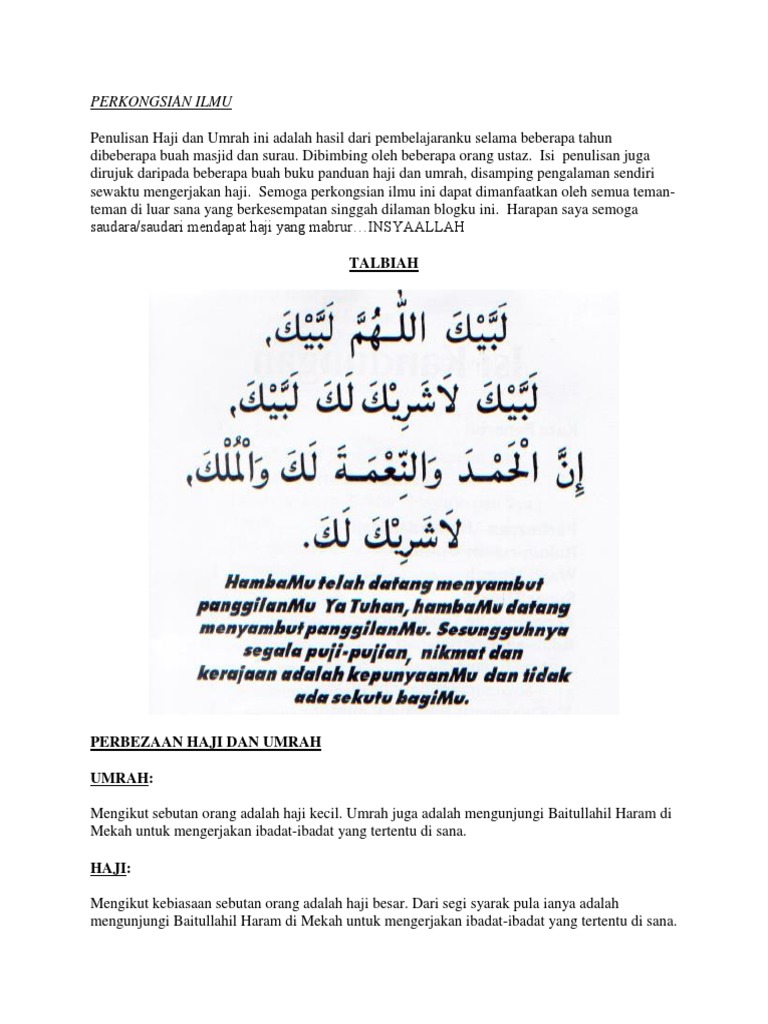 Kursus Umrah Dan Haji Hj Ahmad Junaidi B Mohd Said Pdf Free Download from docplayer.info Niat ihram haji atau umrah ditambah dengan kalimat jika aku terhalang oleh sesuatu kesulitan maka tahallulku di mana saja aku menemui kesulitan. Haji dan umrah merupakan suatu kegiatan rohani yang di dalamnya terdapat pengorbanan, ungkapan rasa syukur, berbuat kebajikan dengan kerelaan hati, melaksanakan perintah allah, serta mewujudkan pertemuan besar dengan umat islam lainnya di seluruh dunia. Kami melayani jasa badal haji & badal umrah. Orang yang mengerjakan umrah akan berniat ihram umrah dari miqat, mengerjakan tawaf qudum, bersaie dan seterusnya bertahallul dari ihramnya dengan bercukur atau bergunting. Bagi siapa yang mengerjakan ibadah haji dan umrah akan mendapatkan pahala. Upload, livestream, and create your own videos, all in hd. Dapat call daripada nombor 03 2726 1257 promote plan haji dan. Haji wajib hukumnya dilakukan oleh muslim yang mampu.